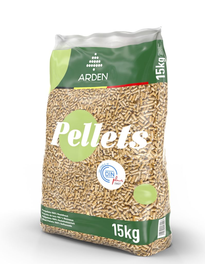 Arden Pellets fabrique en Belgique des granulés de bois certifiés DIN+ et PEFC (07-31-373), garantissant une combustion efficace et une origine durable. Issus de bois résineux de forêts gérées durablement, ils ne contiennent aucun agent liant, le compactage à haute pression assurant leur solidité naturelle. Engagée dans une démarche environnementale certifiée (WOOD.BE-COC-001557), l’entreprise veille au respect de critères écologiques, sociaux et économiques tout au long de la chaîne de production. Les pellets sont conditionnés en sacs de 15 kg, livrés par palette de 66 sacs (990 kg).